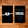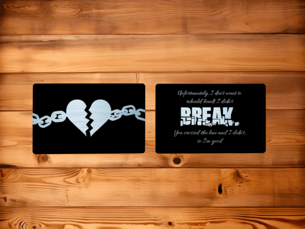 Laser engraved metal card is approximately 3″x2.5″. The size of a standard business card and will easily fit in a wallet, purse, etc.