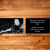 Laser engraved metal card is  approximately 3″x2.5″. The size of a standard business card and will easily fit in a wallet, purse, etc.