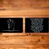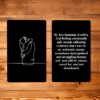 Laser engraved metal card is approximately 3″x2.5″. The size of a standard business card and will easily fit in a wallet, purse, etc.