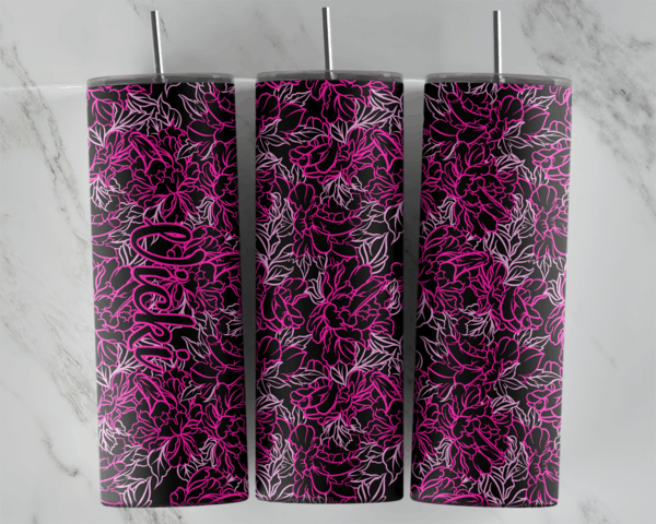 These fun tumblers hold hot or cold items and come with a lid and straw. Double walled insulated. Straws will either be metal or plastic depending on what we have at the time.