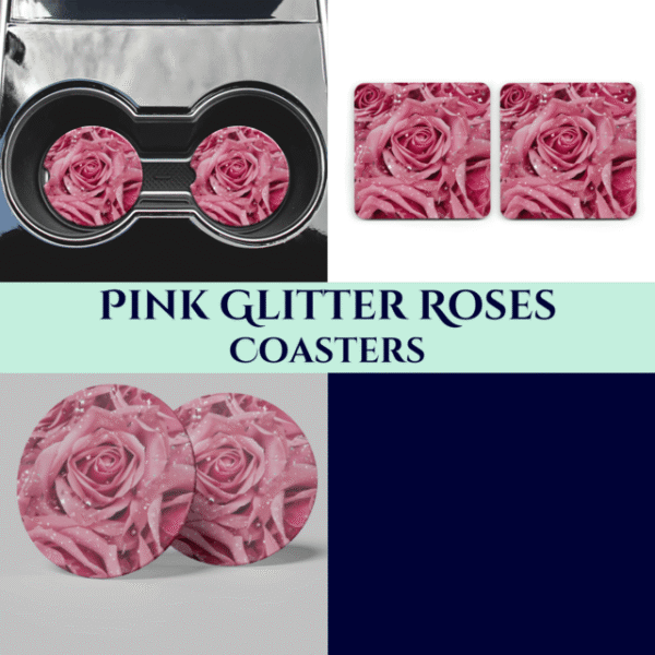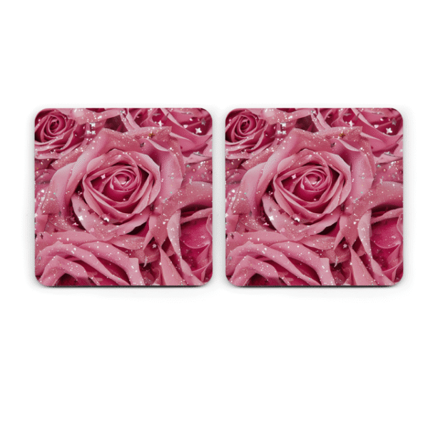 Pink Glitter Roses Coasters