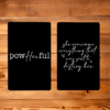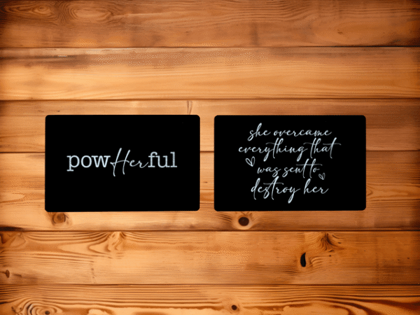 Laser engraved metal card is  approximately 3″x2.5″. The size of a standard business card and will easily fit in a wallet, purse, etc.