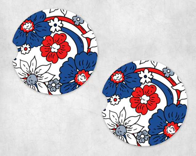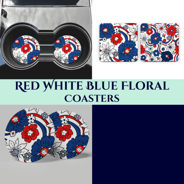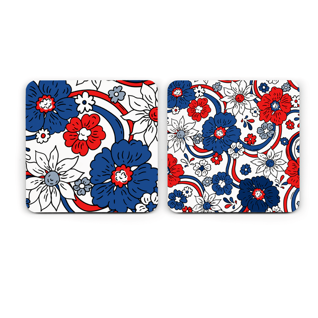 Red White Blue Floral Coasters