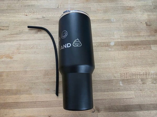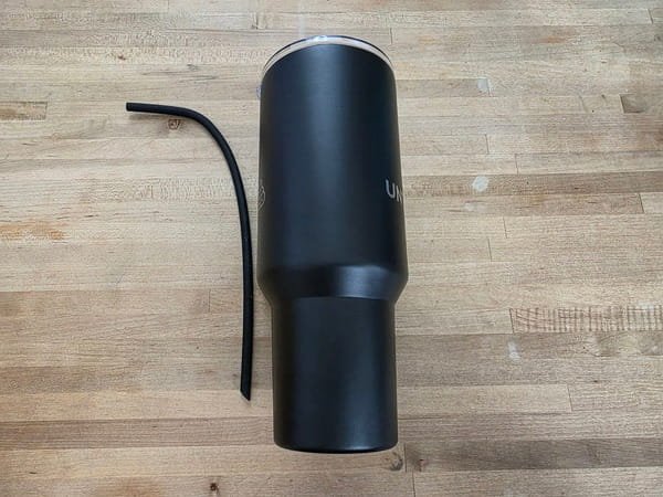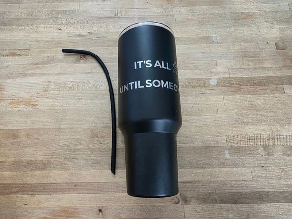 40oz insulated tumbler with lid, and silicone straw. Great for hot or cold drinks and easy to carry or fit in cup holders.
